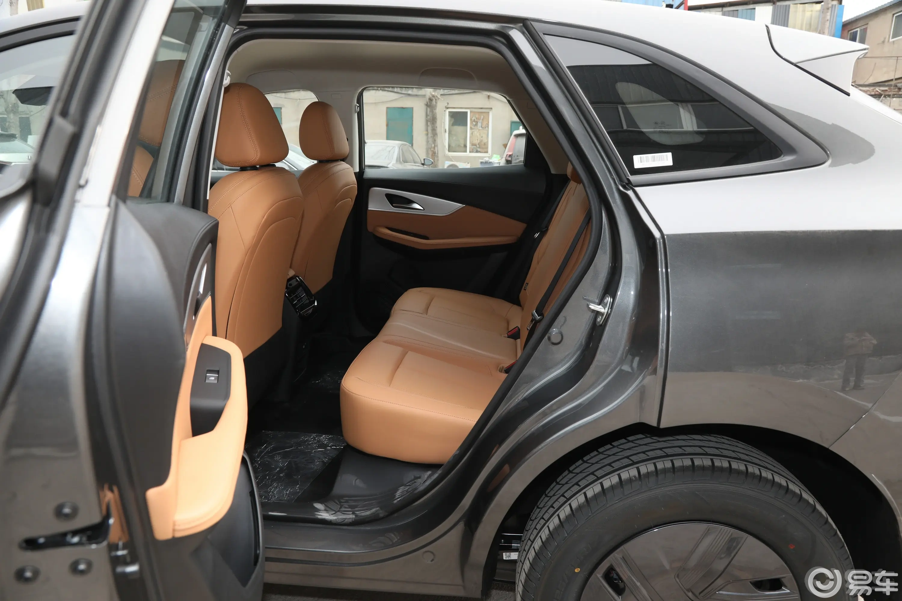 尾部配备贯穿式 LED 尾灯,现在基本已经成了纯电车型的“标配动作”。车顶有小扰流板和中置高位刹车灯,后包围用了分层式双色设计,看起来会比单一色块更有层次感。